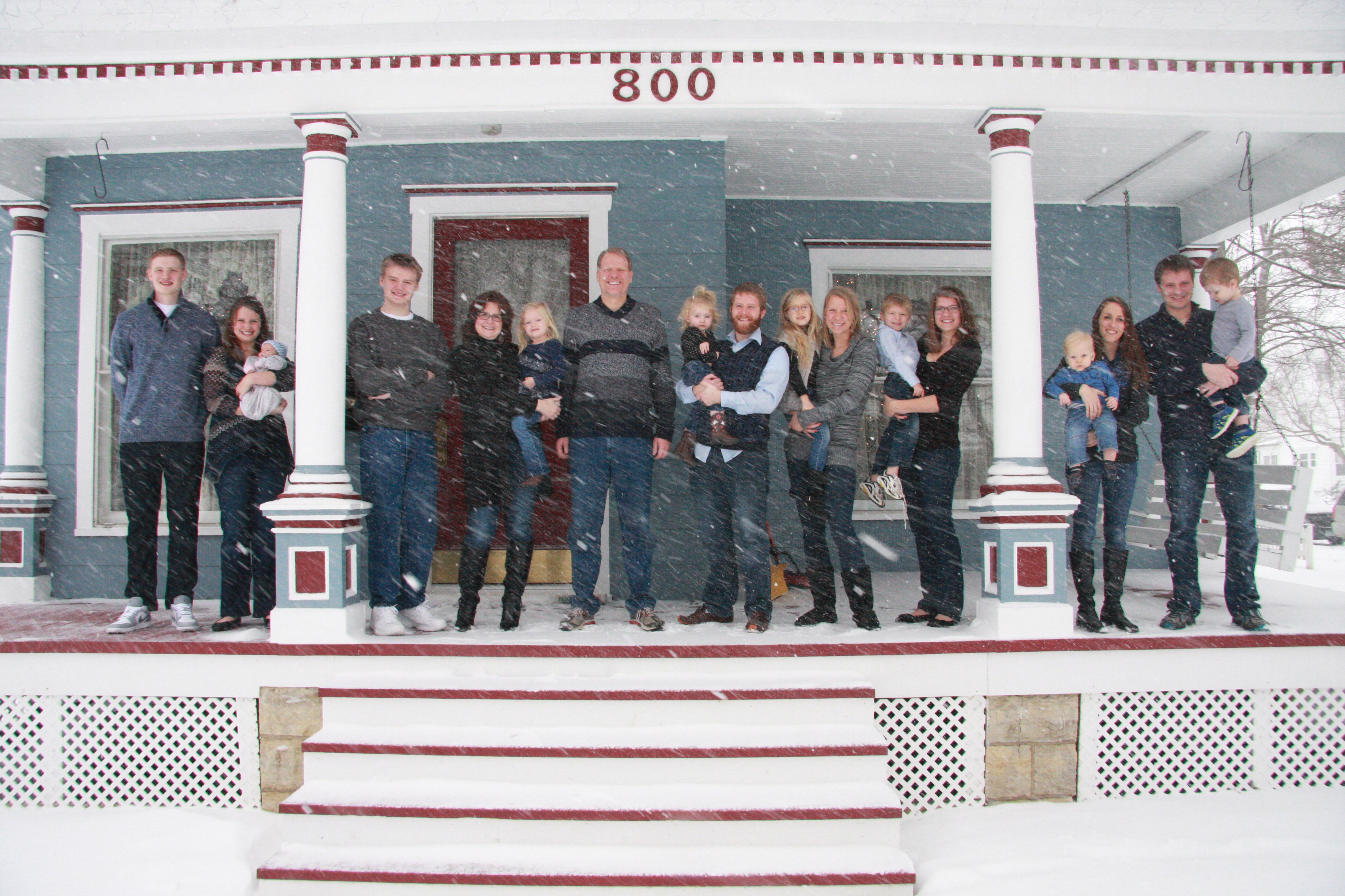 Lisa and Joe (with some help from John) spent a good part of the summer giving Old Main a new paint job and completing other exterior upgrades. It was a LOT of work, and it shows up nicely in this version of our family photo: