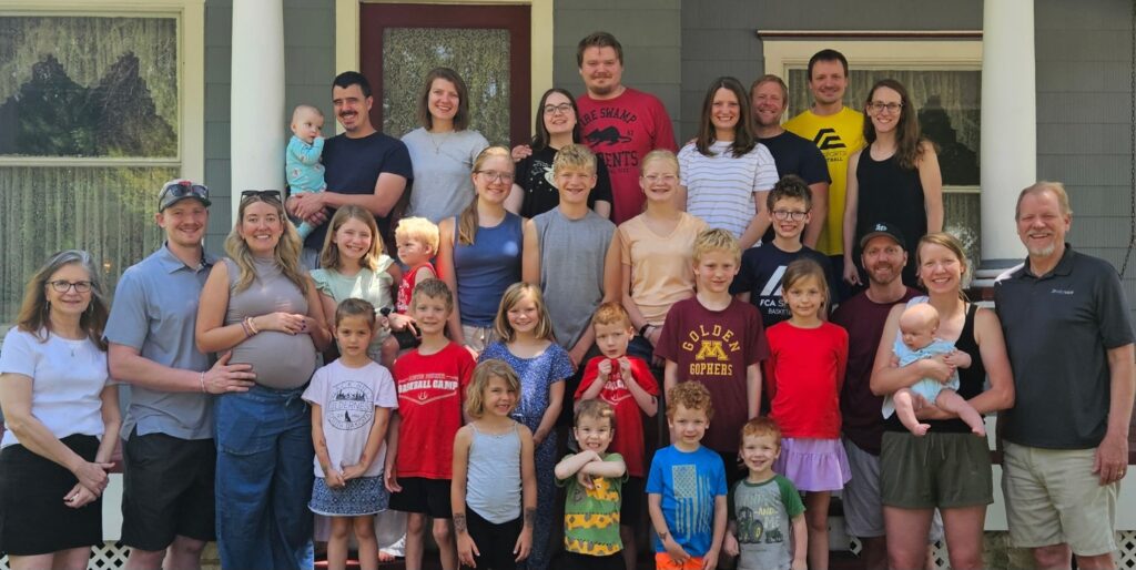 We had the whole family together for a couple of days in June, which is a rare occasion since our daughter Ruthie and her husband Trevin live in Sofia, Bulgaria where they are missionaries. This gave us a chance to update our family picture with all six kids and their spouses and 19 grandchildren (Lewis was still on the inside for this one!)